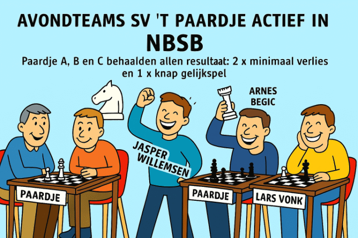 In de vierde ronde ontving ’t Paardje A het zeer sterke BSV A uit Bergen op Zoom. Jesse Joosen zorgde voor een vliegende start door met een zware koningsaanval Piet...Verder lezen→